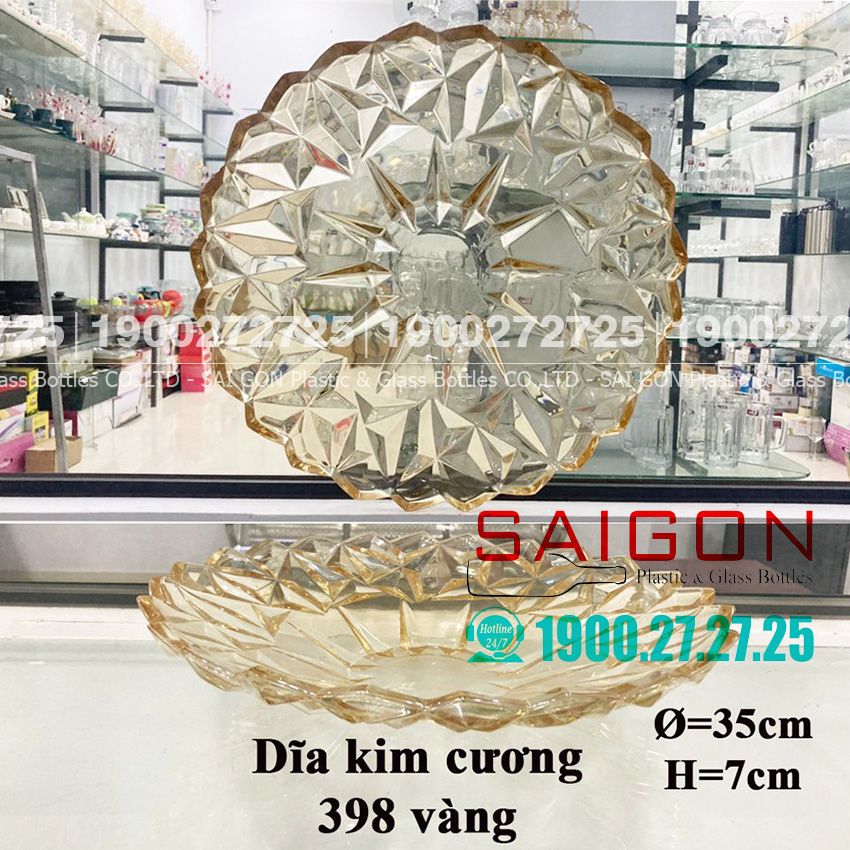 ELEGANT JZ-398V - Dĩa Thủy Tinh Kim Cương Vàng Elegant Đường Kính 35.0cm | Thủy Tinh Màu Cao Cấp